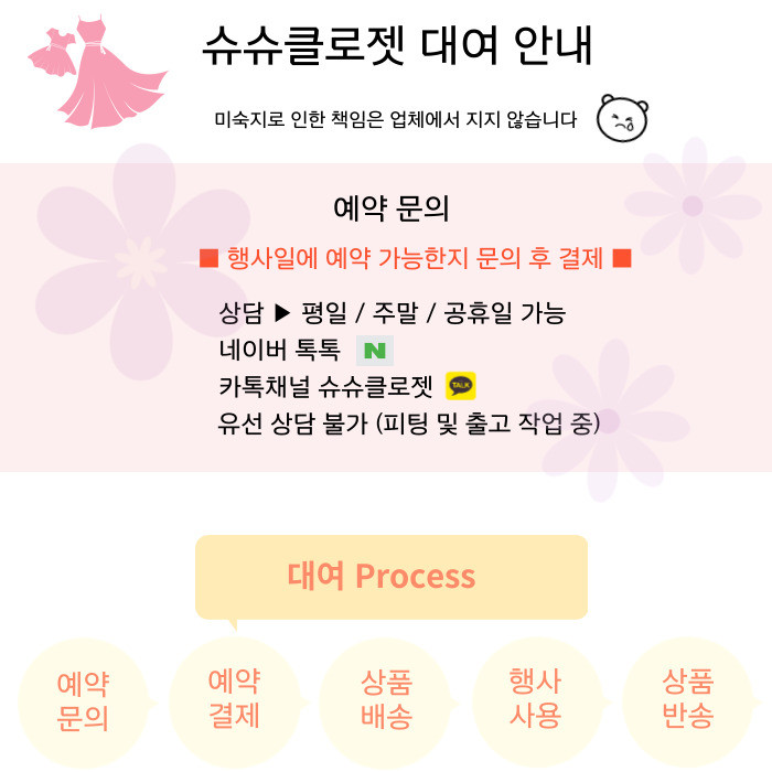 1.행사일 2.키 3.몸무게 4.특이사항 5.상담한날짜 6.상담경로(톡톡,카톡등)