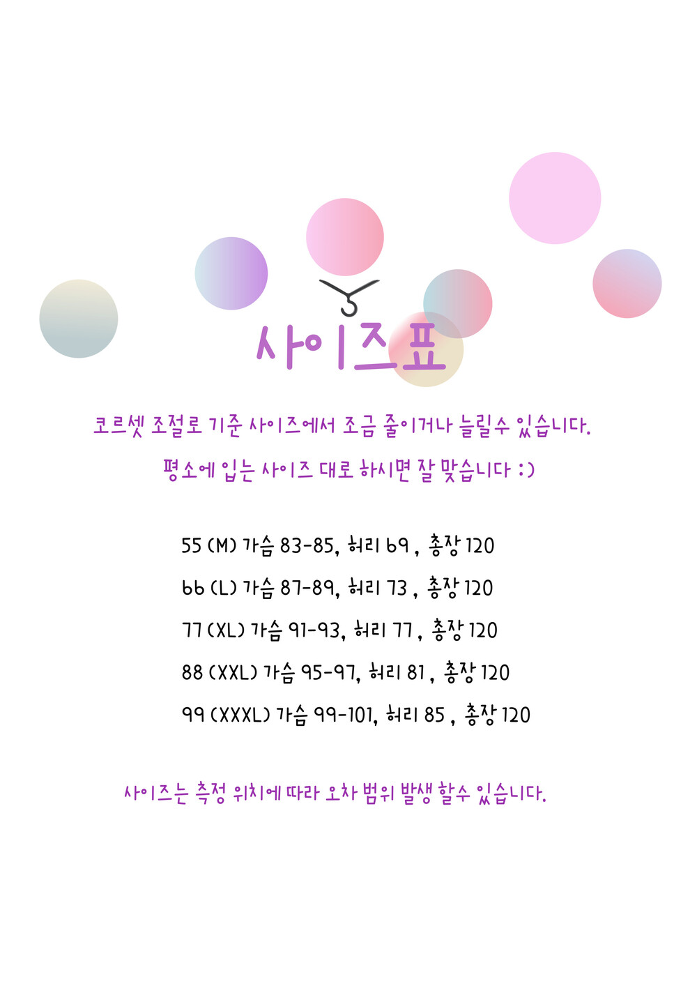 55,66,77,88,99사이즈